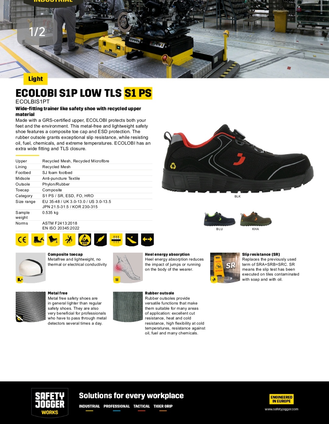 Jogger Ecolobi Low Hitam dijamin kuat, tahan lama serta ringan, nyaman saat dipakai, anti statik, anti slip, terdapat pelindung komposite di bagian depan dan sole sepatu dan dijamin model keren tidak norak, mudah dibersihkan dan cocok untuk kerja dan jalan-jalan. Tersedia ukuran 38, 39, 40, 41, 42, 43, 44, 45.