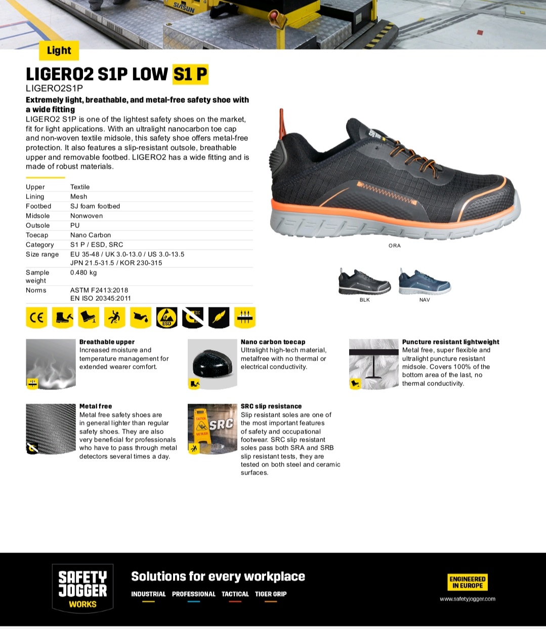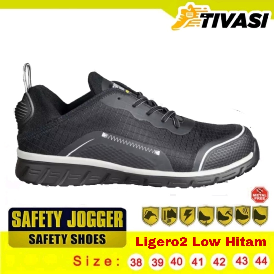 Jogger Ligero2 Low Hitam dijamin kuat, tahan lama serta ringan, nyaman saat dipakai, anti statik, anti slip, terdapat pelindung logam di bagian depan dan sole sepatu dan dijamin model keren tidak norak, mudah dibersihkan dan cocok untuk kerja dan jalan-jalan. Tersedia ukuran 38, 39, 40, 41, 42, 43, 44, 45.